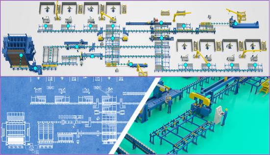 Ø 對于整包項目,我們可以提供車間布局、技術圖紙、鋼板加工設備和生產線物流系統,以及整套軟件系統。