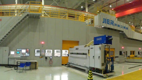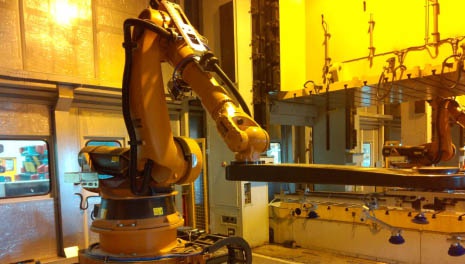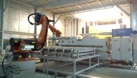 長安某廠沖壓自動化生產線主要包括:機器人拆垛系統、雙料檢測系統、板料輸送系統、板料清洗系統、視覺對中系統、機器人上料系統、線間機器人傳送系統、線尾下料輸送系統、整線封閉防護及照明系統、ADC(模具自動化更換)系統、控制系統等。 線間采用機器人集成外部伺服滑臺系統實現大間距壓機間的板件傳送;整線壓機配置模具自動化夾緊器,實現ADC(模具自動化更換)功能,縮短換模時間、提升生產效率; 自動化生產線采用整線隔音封閉防護;有效的實現自動化設備的隔離防塵、隔音降噪的功能,并且使得整套自動化生產線整潔、美觀、大氣。 自動化生產線壓機(單動)滑塊行程次數為12 SPM,汽車側圍、門內板等中大型沖壓件生產節拍達6 SPM,整線自動化開動率≥98%。