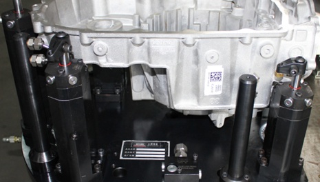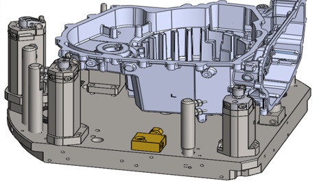 變速箱作為汽車零部件中一個重要組成部分,其加工精度顯得尤為重要;偉本智能機電為重慶某廠設計制作一套殼體非標液壓夾具,依據產品結構特點,結合設計加工受力分析,夾具定位夾緊點選取在合適的位置,最終零件裝夾后工件形變量小于0.01mm,加工后可保證產品加工精度,同時夾具可滿足兩種產品共用。