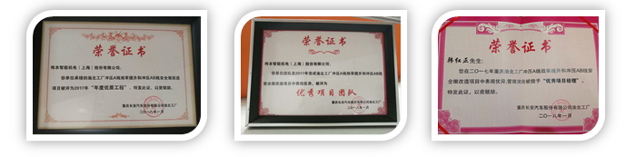我們的項目團隊在此改造項目中通力合作,表現優異,得到客戶重慶長安渝北工廠的高度認可,為我們公司頒發了兩項榮譽證書——2017年“年度優質工程”和“優秀項目團隊”,并授予項目經理“優秀項目經理”的榮譽。公司特此對該項目現場的主要成員進行感謝和表彰。